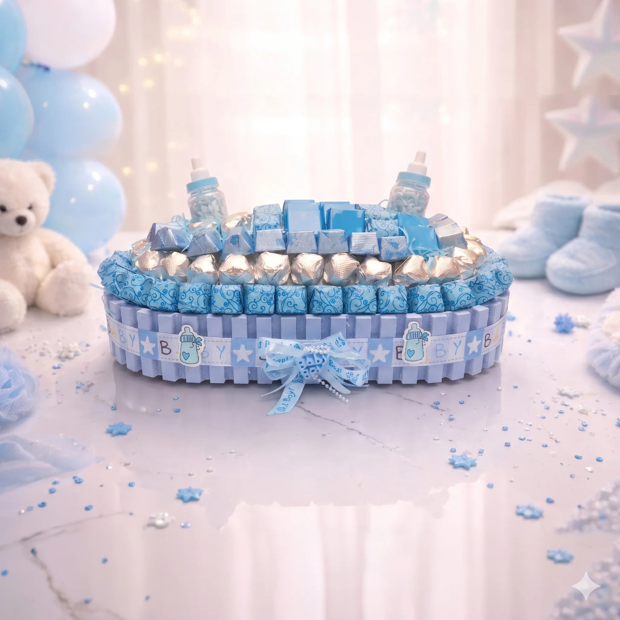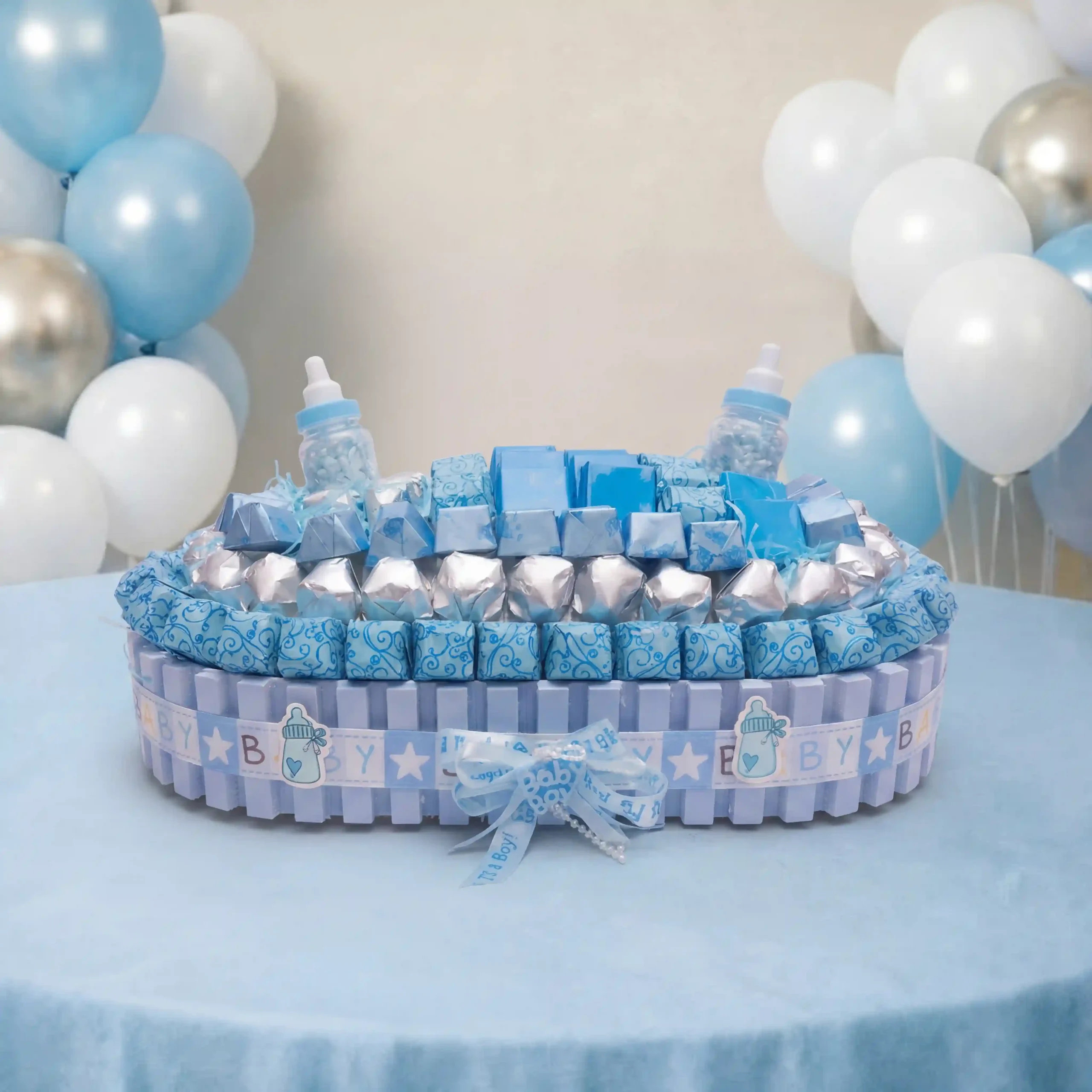 A dreamy baby boy chocolate gift with 94 pieces — perfect for welcoming a baby boy with sweet dreams.