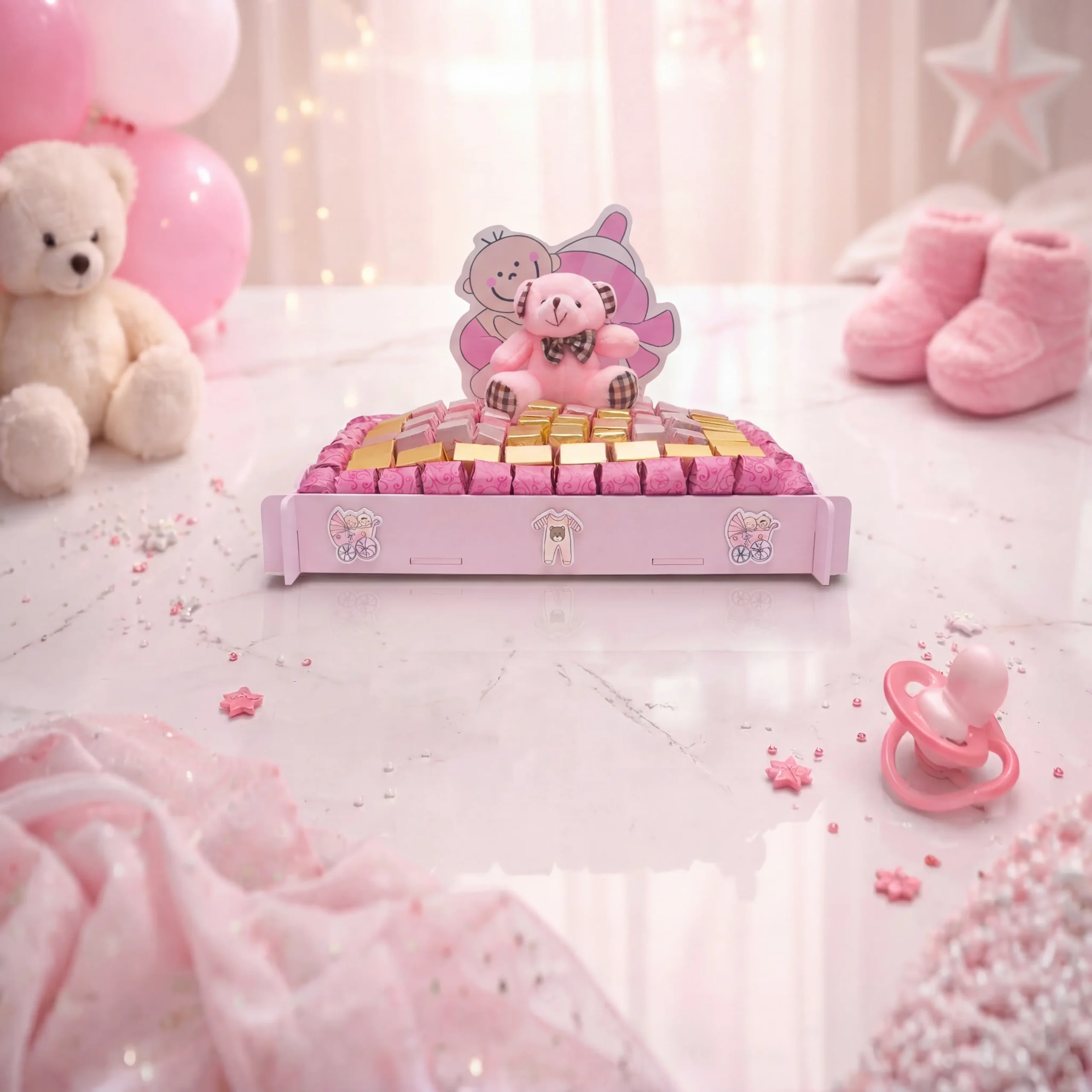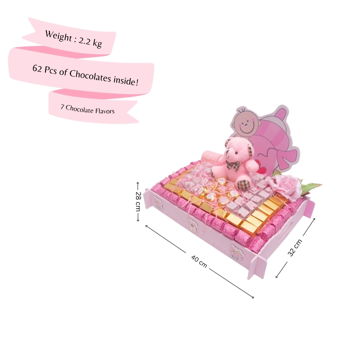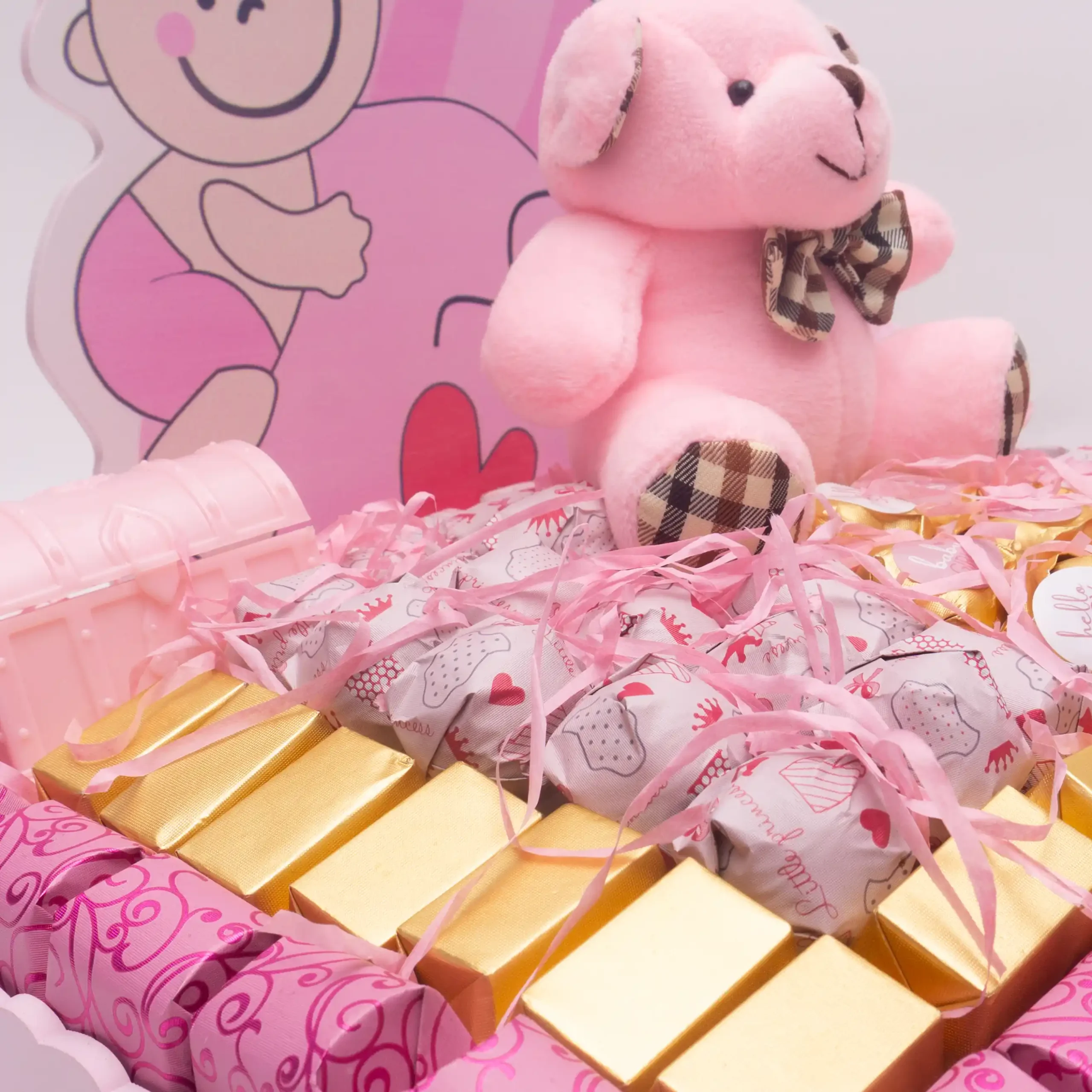 A sleepy-time baby girl chocolate collection of 97 pieces — gentle and sweet for a baby shower or birth celebration.