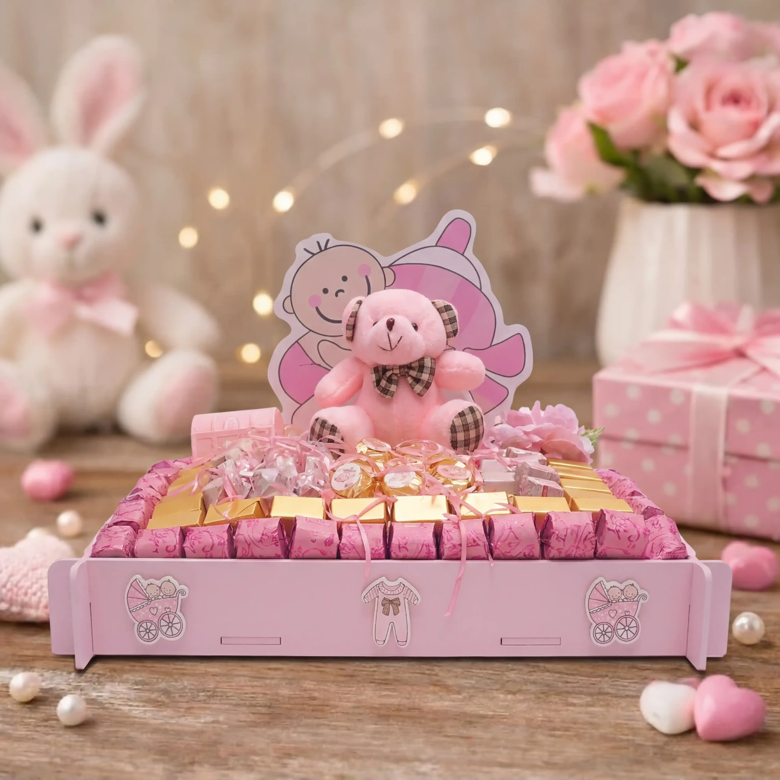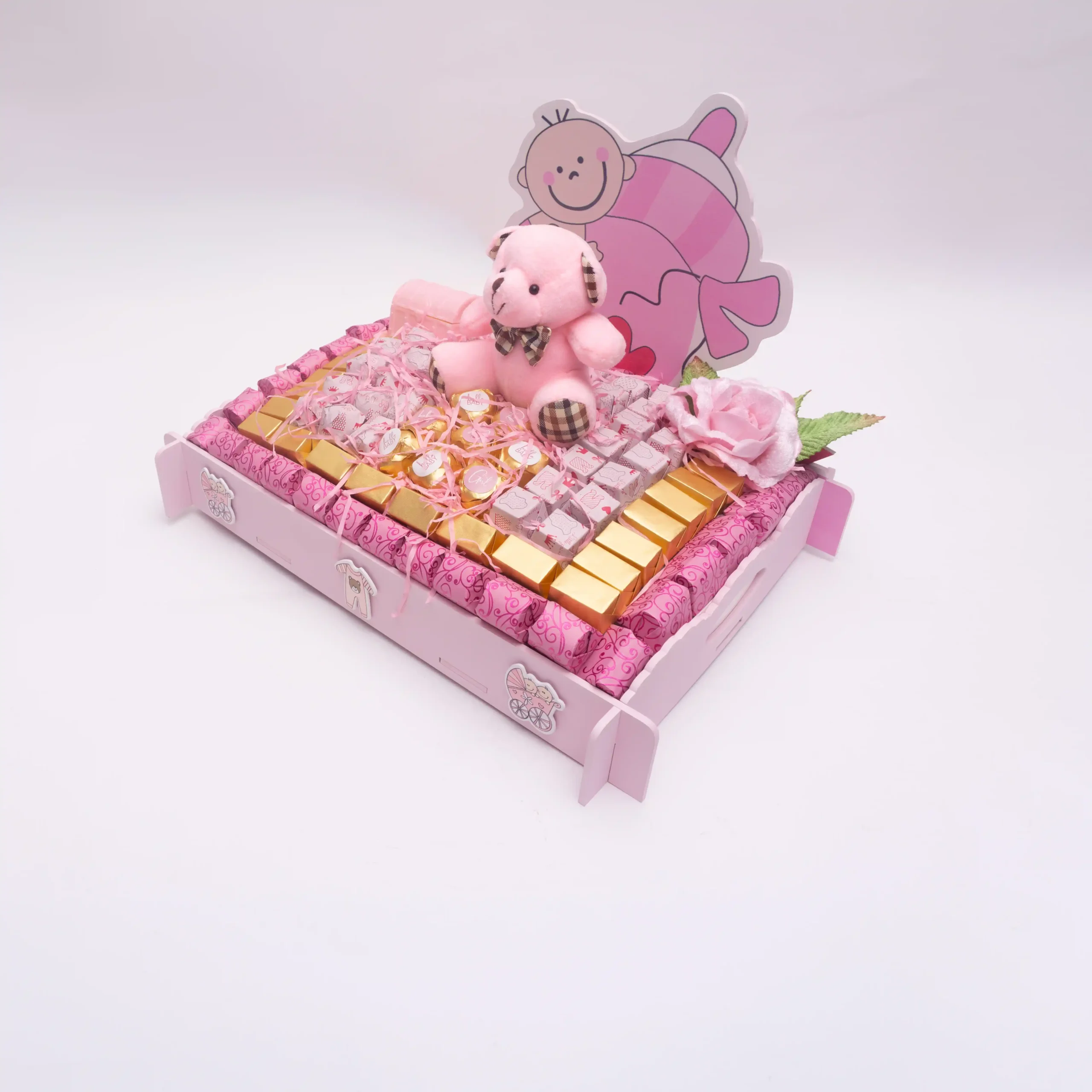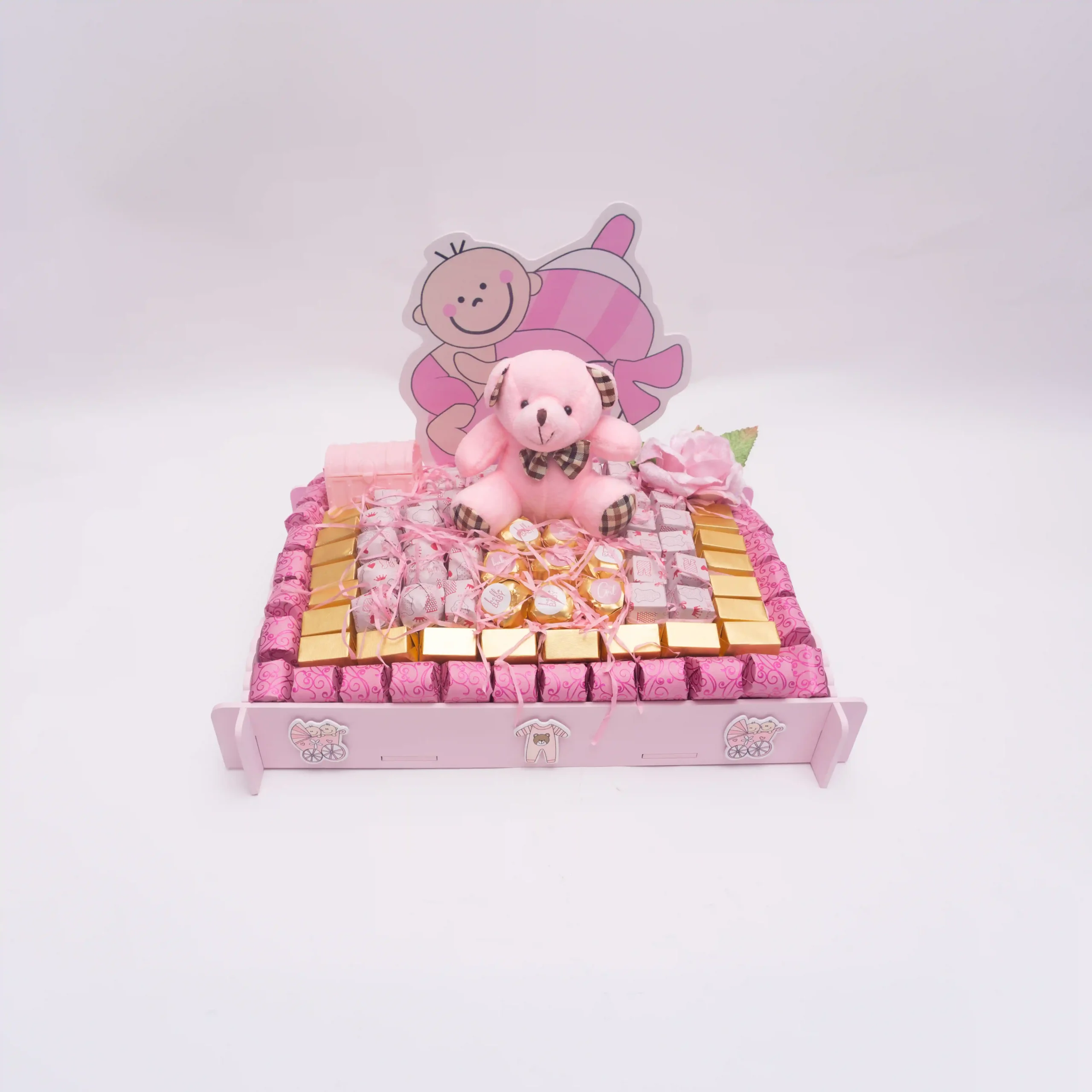 A sleepy-time baby girl chocolate collection of 97 pieces — gentle and sweet for a baby shower or birth celebration.